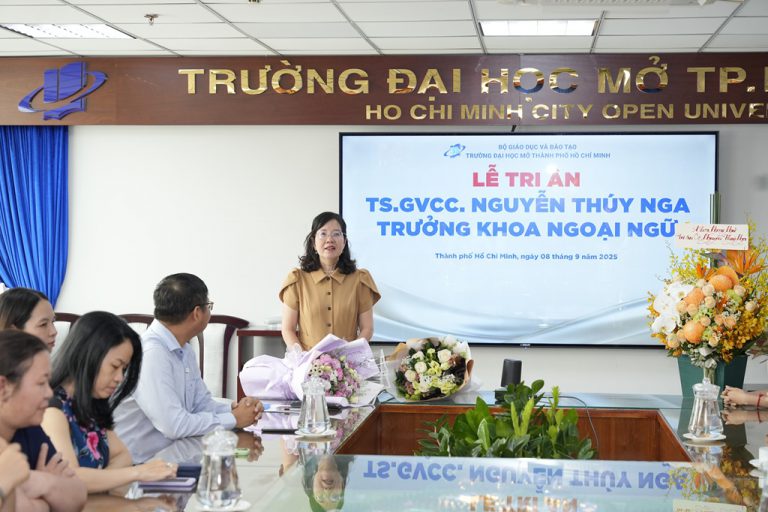 On the morning of September 8th, 2025, in Room 704, Ho Hao Hon Campus, Ho Chi Minh City Open University solemnly held an honouring ceremony for Dr. Senior Lecturer Nguyen Thuy Nga – Dean of the Faculty of Foreign Languages. The ceremony was organised to recognise and commemorate her more than 30 years of dedicated commitment to education, scientific work, and the University’s development.